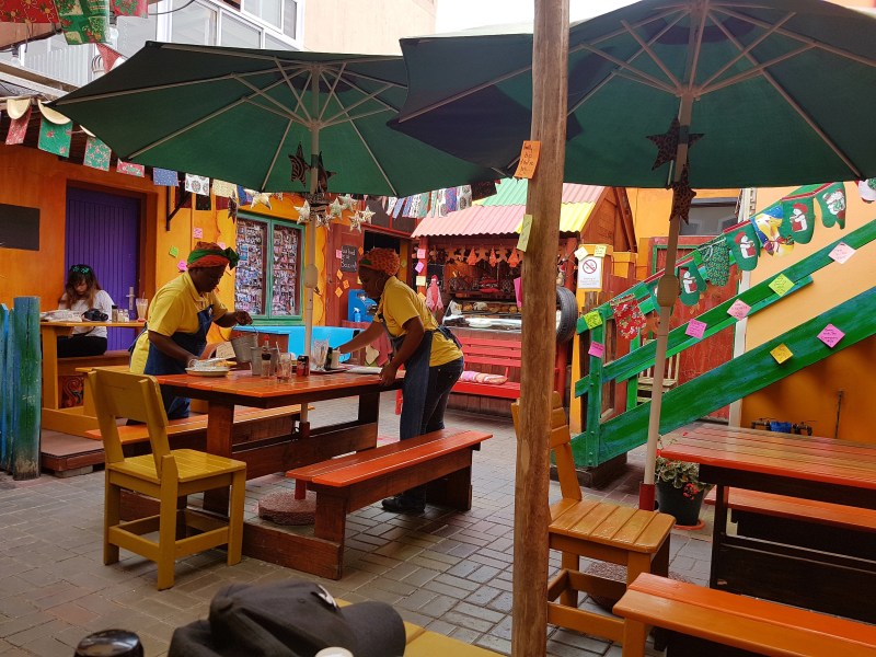 eating in pretty, colourful restaurants …