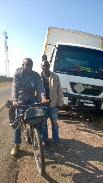 Close to the border to Botswana Karo met some familiar faces. Having been on the main road for weeks, lots of truck drivers had passed Karo several times and often stopped for a small chat to hear about her progress …