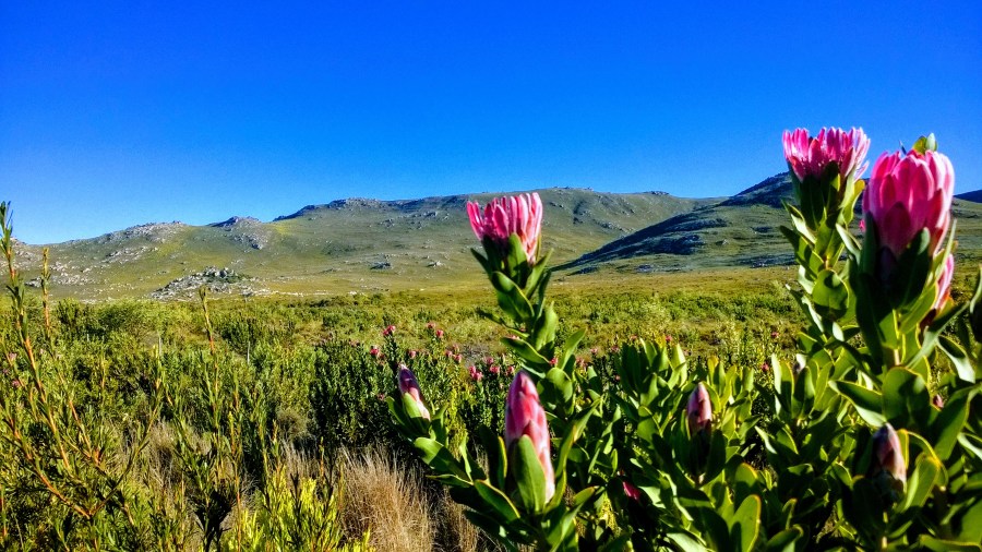 After beautiful Hermanus Karo continued to Kleinmond, passing astonishing fields decorated with Protea flowers, the queen of the Fynbos species and not without reason South Africa’s national flower …