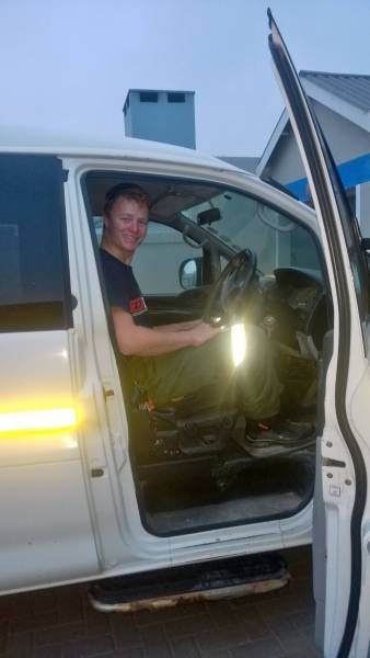 Jandre, a very energetic do-er and man for everything. He hosted Karo in his flat in Swakopmund, Namibia and tought her a lot of interesting facts about Uranium mining … 🙂
